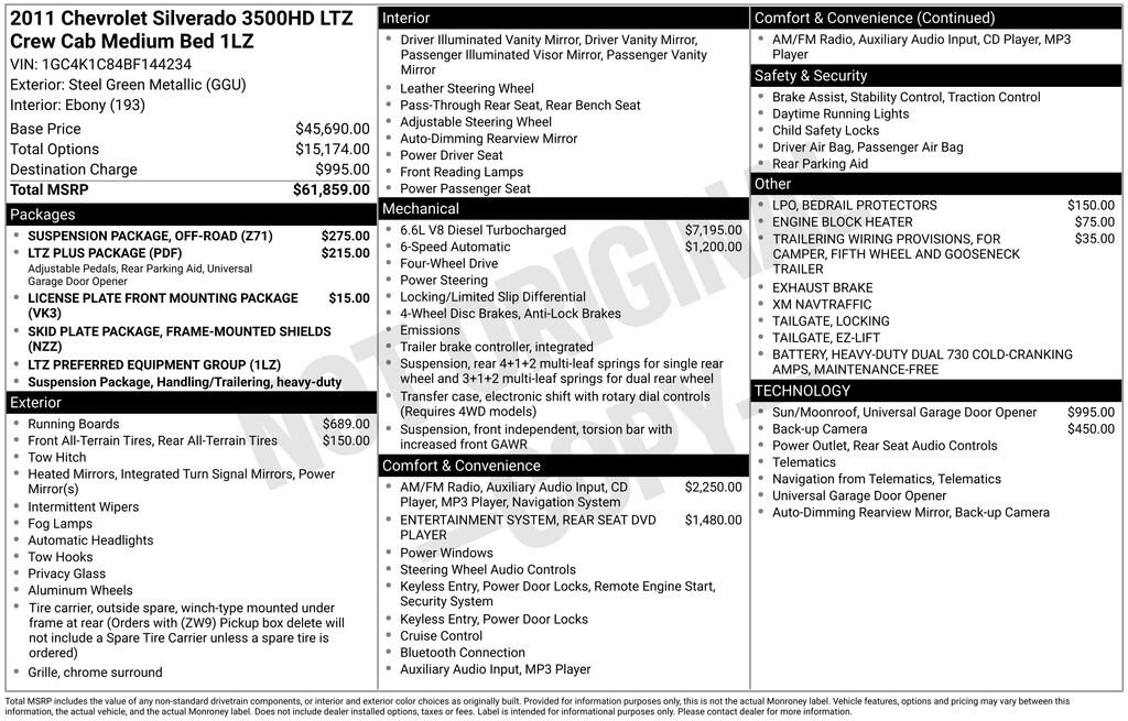 Whether you're tackling tough jobs or embarking on adventures, this 2011 Chevrolet Silverado 3500HD LTZ is the perfect companion. Its rugged Duramax diesel power, premium features, and exceptional versatility make it a standout in the heavy-duty truck segment.