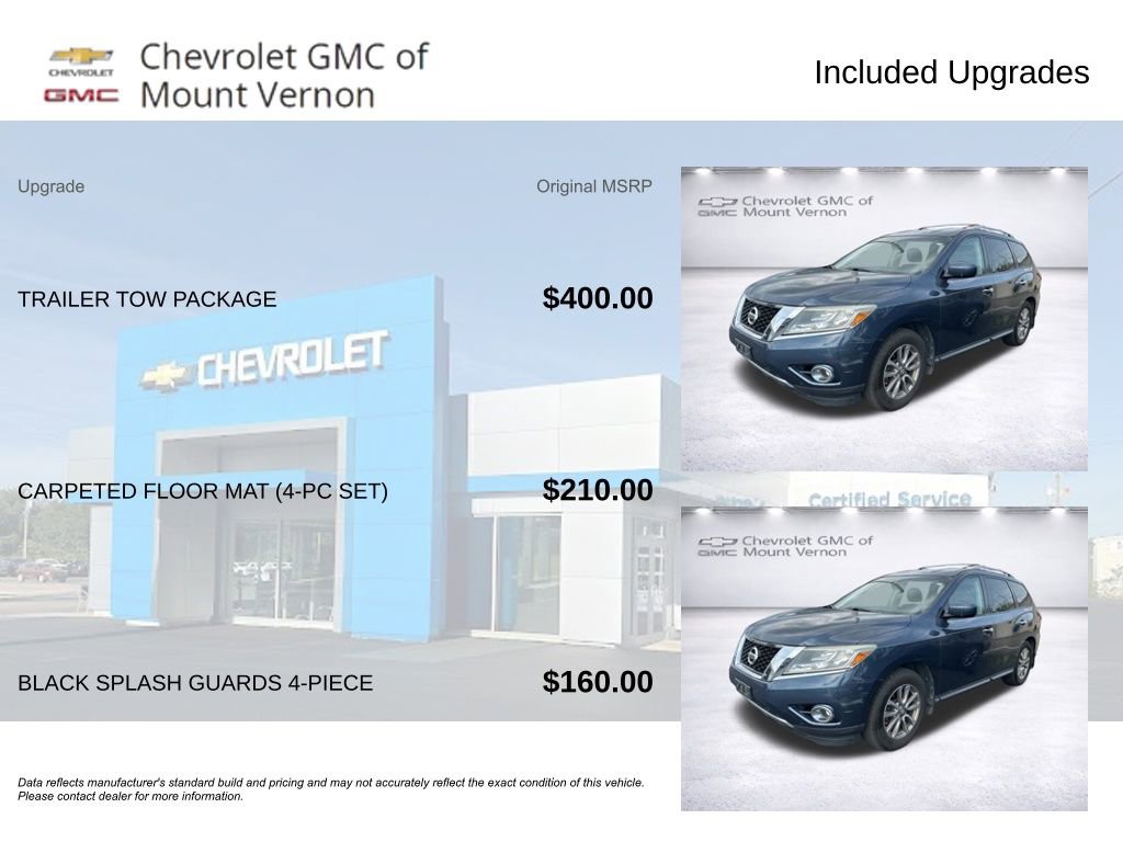Backed by Chevrolet GMC of Mount Vernon's Complimentary LIFETIME ENGINE/MOTOR WARRANTY, this 2015 Nissan Pathfinder SV is a smart investment that will provide you with years of reliable performance. Visit our showroom today to experience this exceptional SUV for yourself and discover how it can enhance your daily driving and weekend adventures.